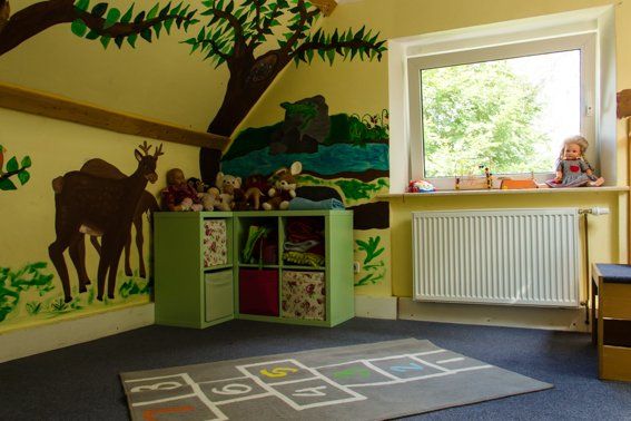 13.15 bis 14.00 Uhr: Ruhige Mittagspause, in der ein Buch vorgelesen oder eine CD gehört wird. Einige kleinere Kinder halten in der Zeit ihren regelmäßigen Mittagsschlaf in einem separaten, ruhigen, abgedunkelten Raum.